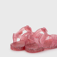 Fuchsia multi glitter jelly sandals. Hook and loop closure.