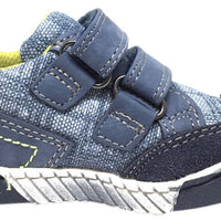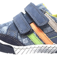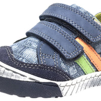 BKO Boy's Zaan II Denim and Navy Canvas Double Hook and Loop Strap Sneaker Shoe